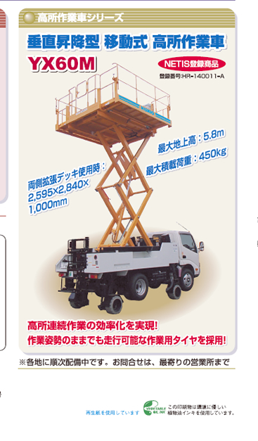 冬季作業の安全対策/車載型非接触路面温度計「0℃(れいど)くん」 高所作業車シリーズ/垂直昇降型 移動 高所作業車 YX60M